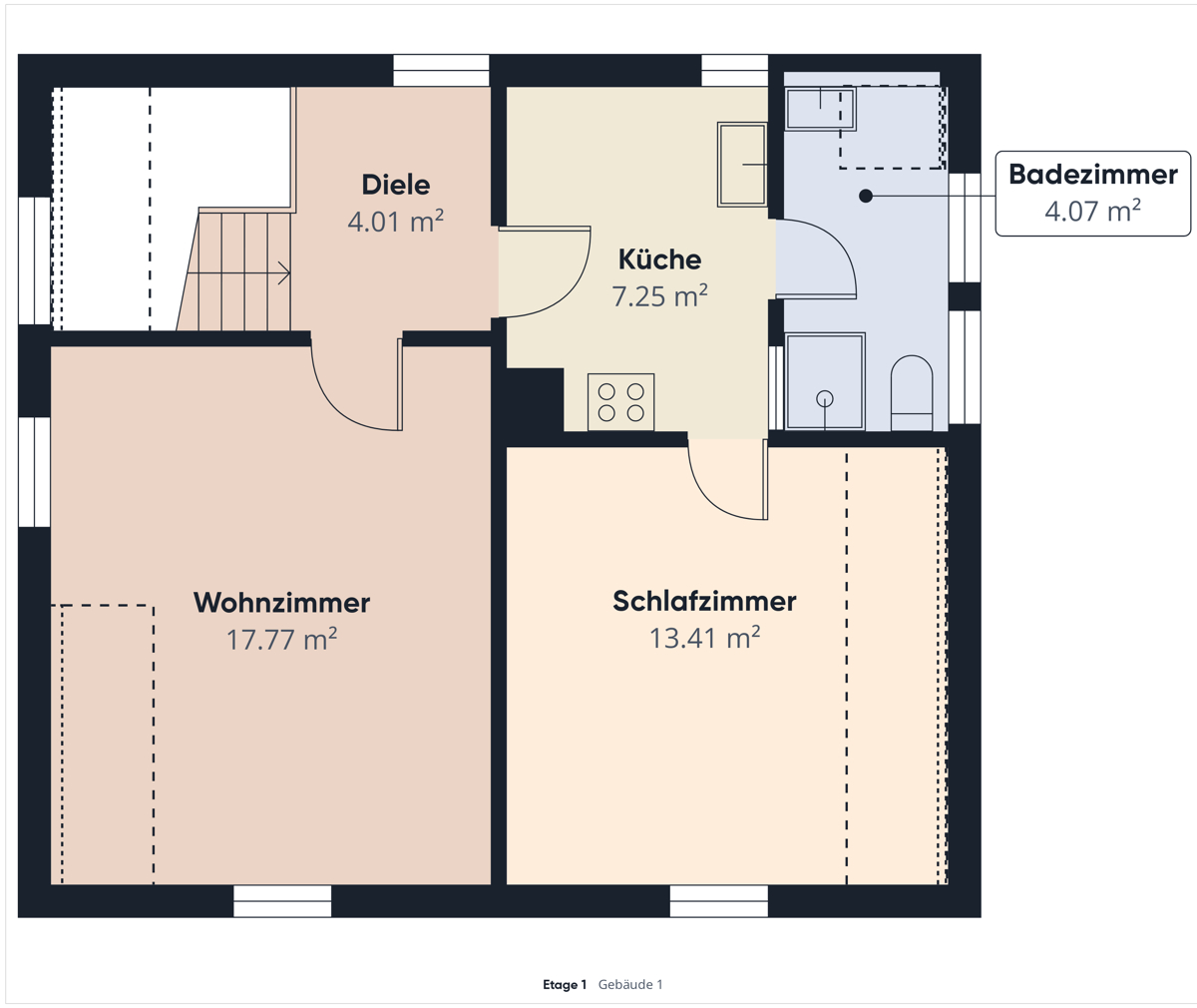 Im Erdgeschoss finden Sie eine große Küche, ein gemütliches Wohnzimmer und ein Schlafzimmer, sowie ein Badezimmer und ein separates Gäste WC.